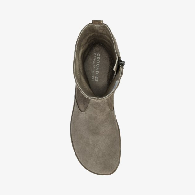 Superlässig: Mit dem Odessa machst du es dir auch an kühlen Herbst- und Wintertagen absolut gemütlich. Den Kurzstiefel aus weichem Rauleder kombinierst du zu Rock und Kleid genauso wie zur Skinny Jeans. Der geknautschte Schaft unterstreicht den entspannten Look. Die typische Groundies TrueSense®-Barfußsohle ist komplett flach, dünn und absolut flexibel. So fühlst du mit jedem Schritt den Kontakt zum Boden. Du gehst gesund und natürlich.
